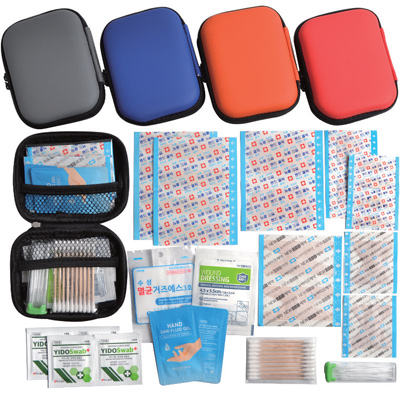 | 기타사항 | 표준밴드8p/대형밴드2p/사각밴드2p/미니밴드4p/손끝밴드2p/관절밴드2p/ 손소독제2p/멸균거즈1p/드레싱밴드1p/알콜솜4p/15p치간칫솔/10p면봉/구급케이스 ※밴드이미지는 변경될수있음 |