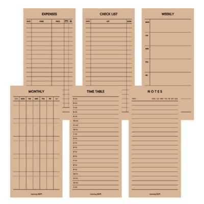 | 기타사항 | •가계부/체크리스트/위클리 •먼슬리/타임테이블/노트 •70 x 150mm 50매 •낱개판매 가능/대량 별도문의 |