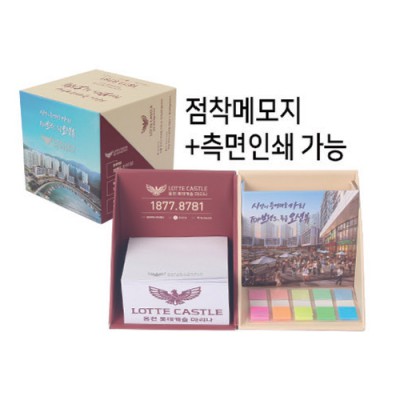 | 기타사항 | •85 x 85 x 85mm •내지 70 x 76mm •점착메모지 300매/형광필름20매 •박스 컬러인쇄, 내지 먹1도 (측면인쇄별도) •기본수량 100개 |