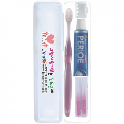 | 기타사항 | (종이케이스별도 100원) •Size : 200x45x30㎜ •페리오치약50g,국산투명칫솔,캡,치간칫솔2p ※구성품 교체 가능 / 칼라인쇄시 100원추가 |