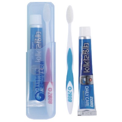 | 기타사항 | •Size : 200ⅹ50ⅹ30mm •2080치약50g,2080칫솔(직사각물컵) ※구성품 교체 가능 / 칼라인쇄시 100원추가 |